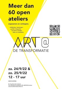 Hè, na drie jaar gooien we op Kunstfabriek de Transformatie op zaterdag en zondag 24 en 25 september de deuren van onze ateliers weer open, lekker. We doen dat elke twee jaar maar om de bekende redenen kon het vorig jaar niet doorgaan. Zijn we versprongen van oneven jaren naar even jaren, realiseer me nu. Lekker belangrijk. Belangrijk is dat het weer kan en dat er weer reuring in het gebouw is.