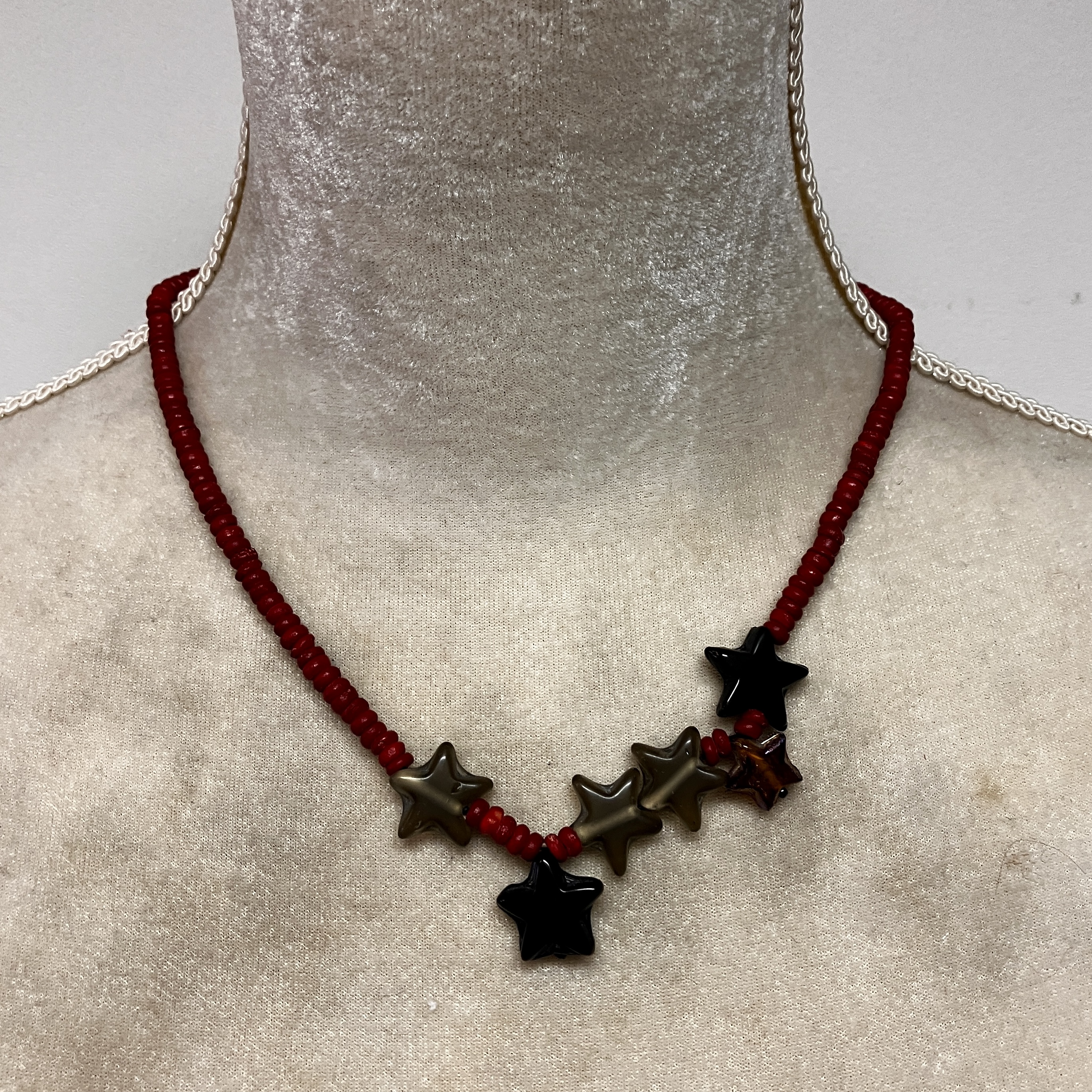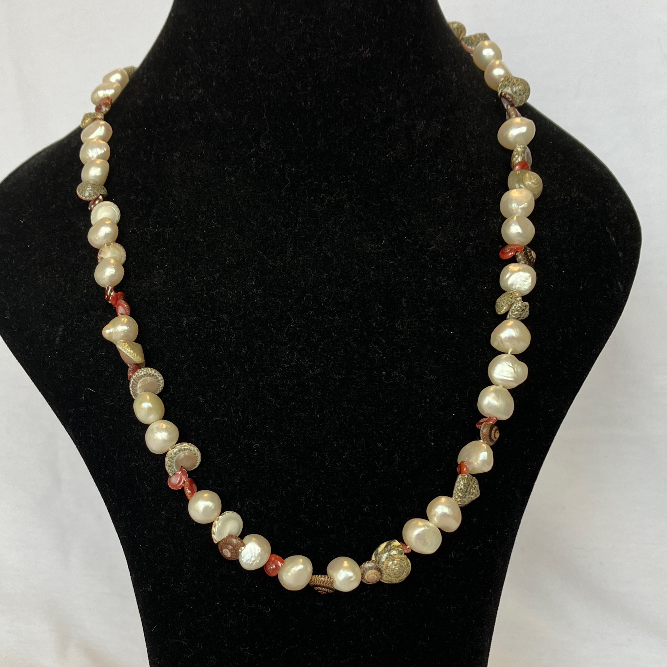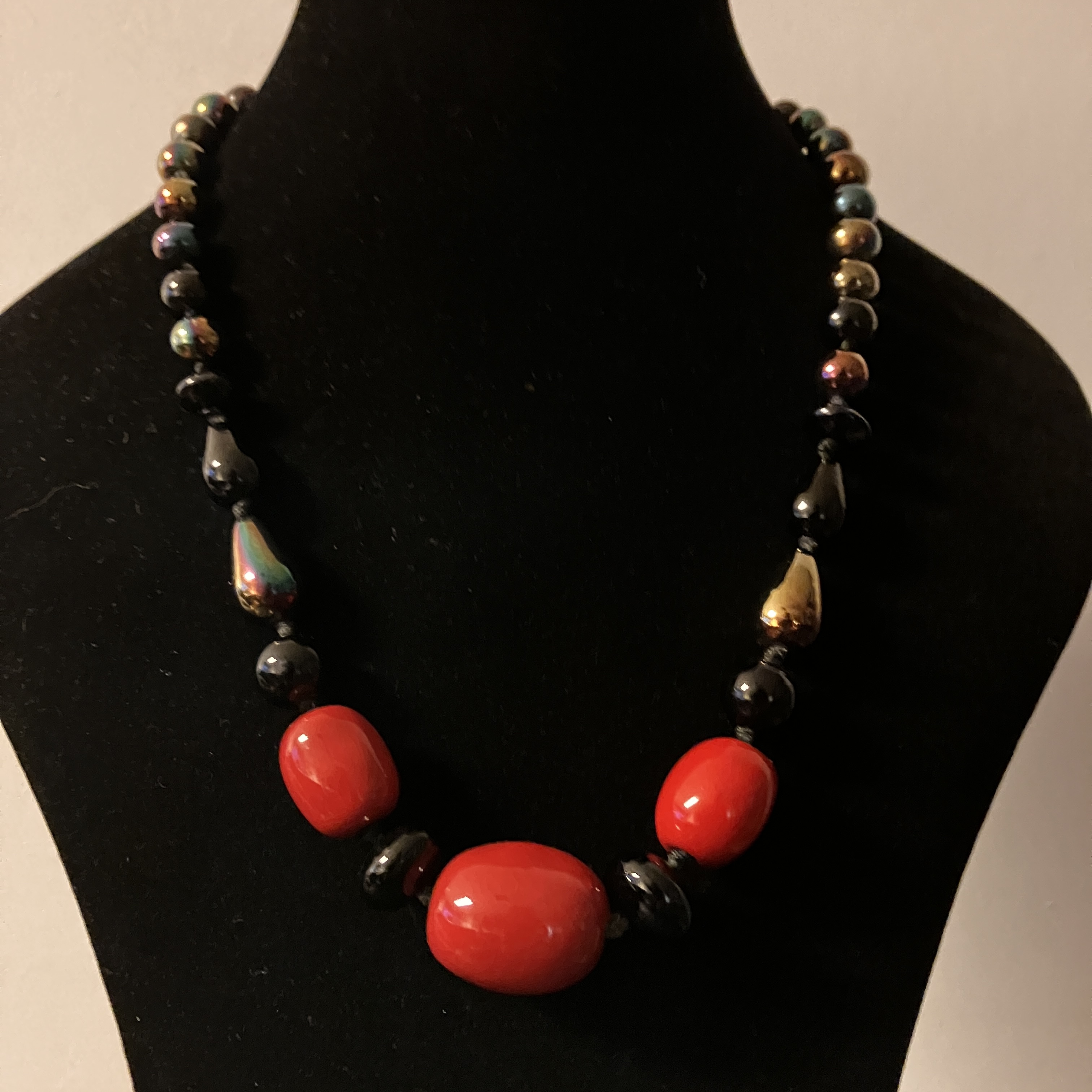 De ekster in mij eist ook haar plek op. Mooie kralen vind ik onweerstaanbaar. Ik verzamel oude kralen van natuurlijk materiaal. Mijn uitdaging is om er weer mooie halssnoeren en armbanden van te maken zonder gebruik van metaal.